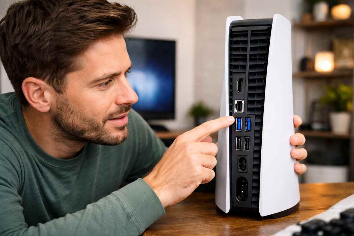 Il codice colore nel mondo dell’informatica nasce per semplificare la vita all’utente. Tradizionalmente, il nero identifica lo standard USB 2.0, ormai considerato lento per il trasferimento dati massiccio ma perfetto per periferiche semplici. Il blu, invece, è il vessillo del USB 3.0 (e successivi), capace di velocità nettamente superiori. Nella PS5 standard, questa distinzione è netta: la porta anteriore è spesso nera (USB 2.0), mentre le due porte posteriori sono blu perché certificate come USB 3.1 Gen 2, capaci di toccare i 10 Gbps. È un linguaggio visivo che dice: “Se devi collegare un hard disk esterno per i tuoi giochi, usa queste”.